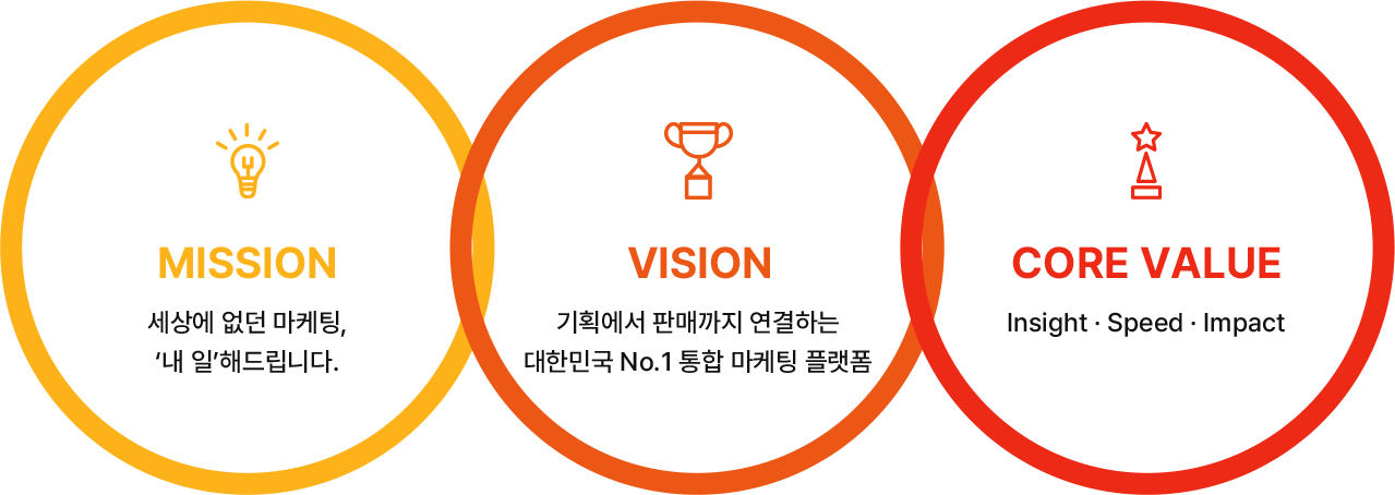 세상에 없던 마케팅으로 브랜드의 내일을 앞당기는 것이 우리의 미션입니다.