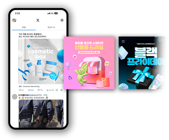 실시간 이슈에 민첩하게 대응해 브랜드 공감대를 확대하고, 이벤트·신제품·브랜드 소식을 즉각적으로 퍼뜨리며, 재치 있는 카피와 밈을 활용해 자연스러운 참여를 끌어내는 고효율 SNS 콘텐츠 마케팅을 제공합니다
